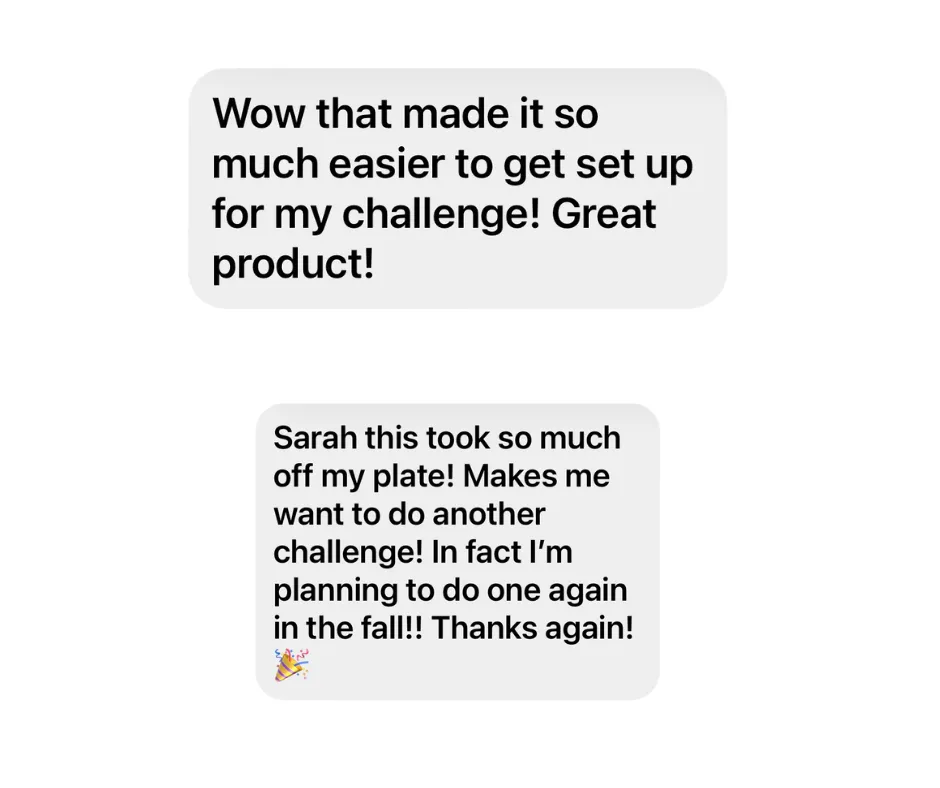 Emails come in google docs, make a copy and personalize highlighted (or anything else you choose)and then copy and paste right into your email provider, schedule ahead of time to save you the time and frustration of doing them manually! Keep your audience well engaged for your challenge
